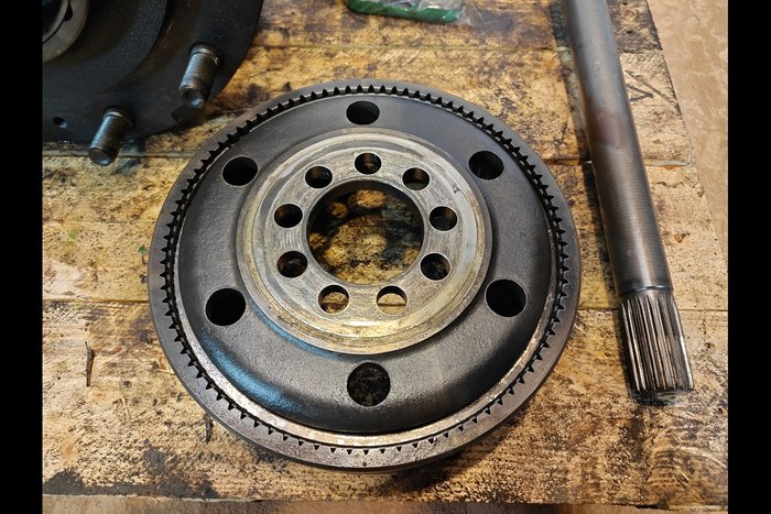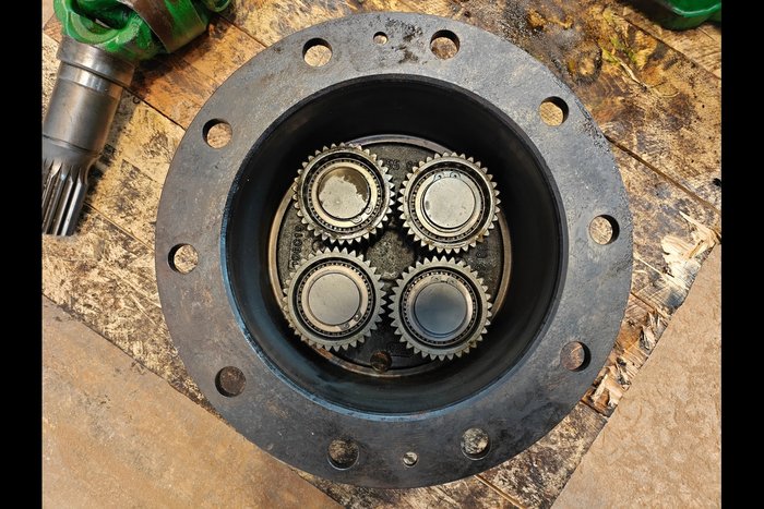 Slutdrev John Deere 6215R Venstre ligger i kategorien traktor reservedele foraksel slutdrev. Dette er en brugt 6215R fra John Deere.
